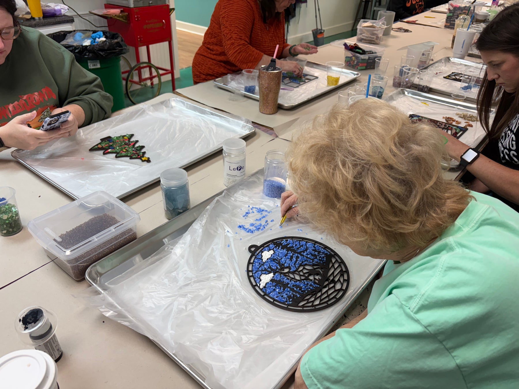Whether you're a seasoned crafter or a beginner, this workshop is perfect for everyone wanting to create a one-of-a-kind decoration. Ages 16+ only please! Please note, you will need to leave your piece overnight to finish curing and will be able to pick up anytime after 24 hours.