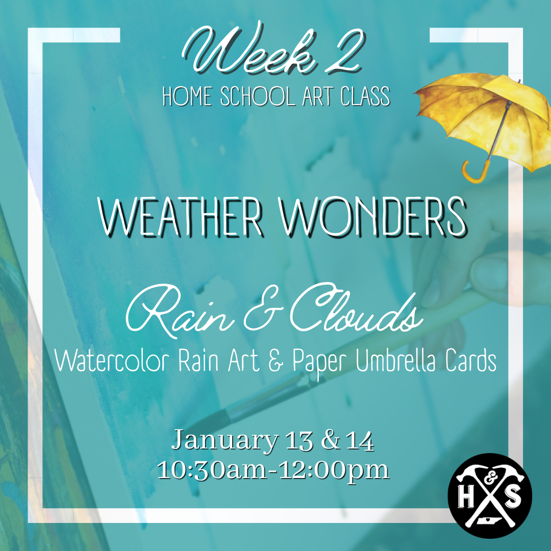 Week 2 - JAN 13: Rain and Clouds - Watercolor rain art and paper umbrella cards