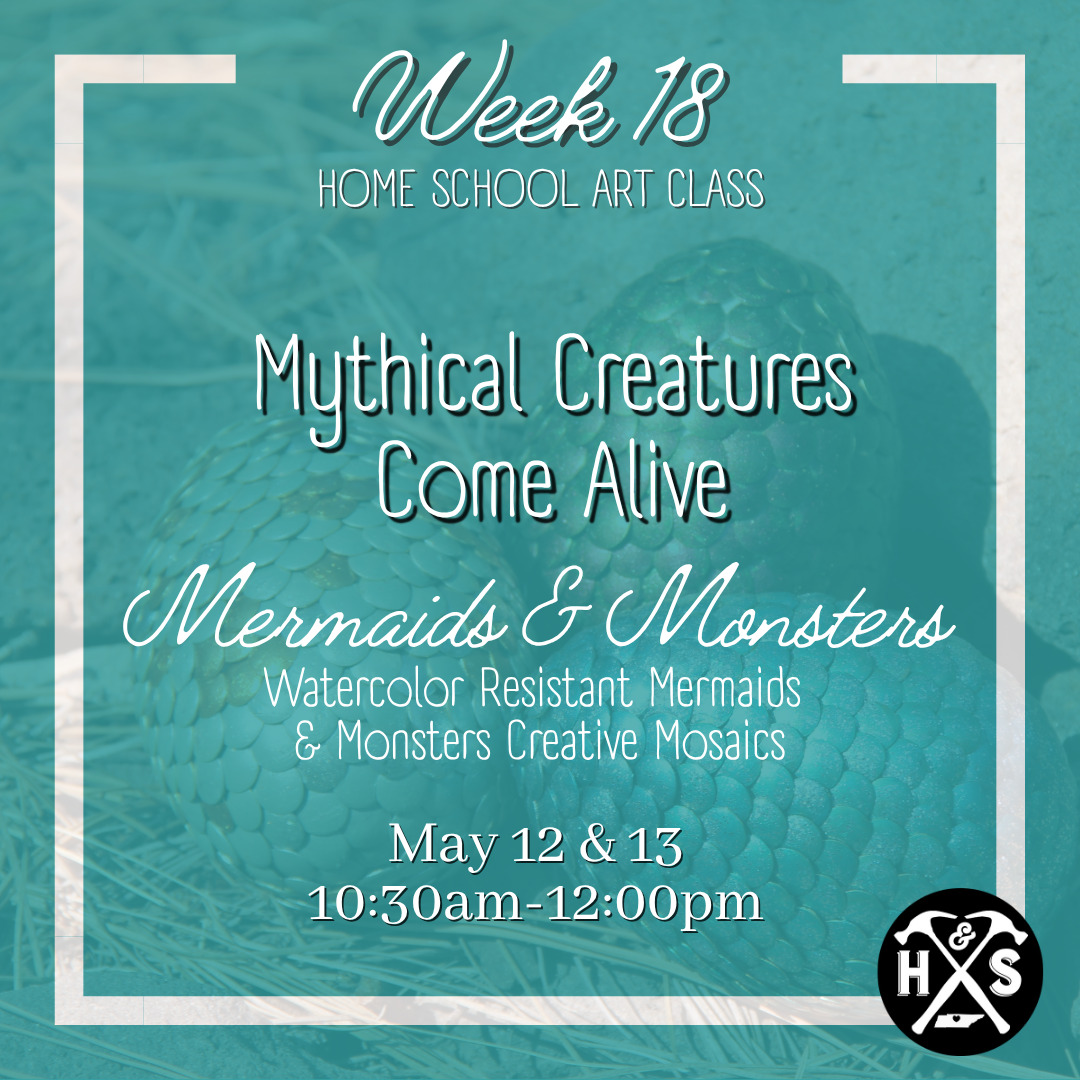 Week 18 - MAY 12: Watercolor Resistant Mermaid and Monsters creature mosaics