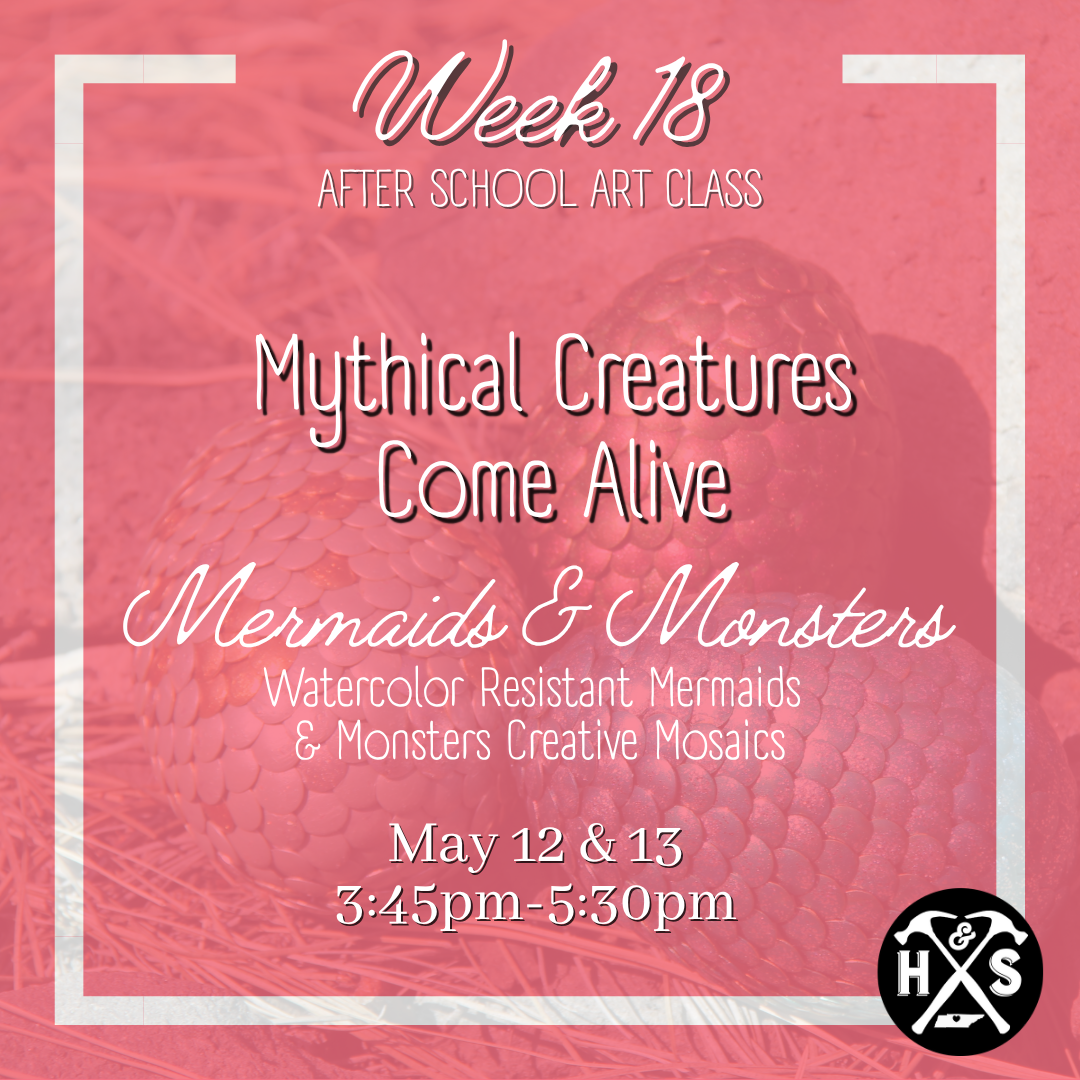 Week 18 - MAY 13: Watercolor Resistant Mermaid and Monsters creature mosaics