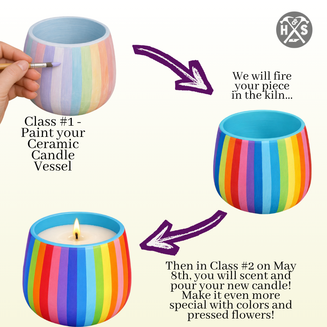 Create something uniquely yours—a hand-painted ceramic candle vessel that's as beautiful as it is functional!