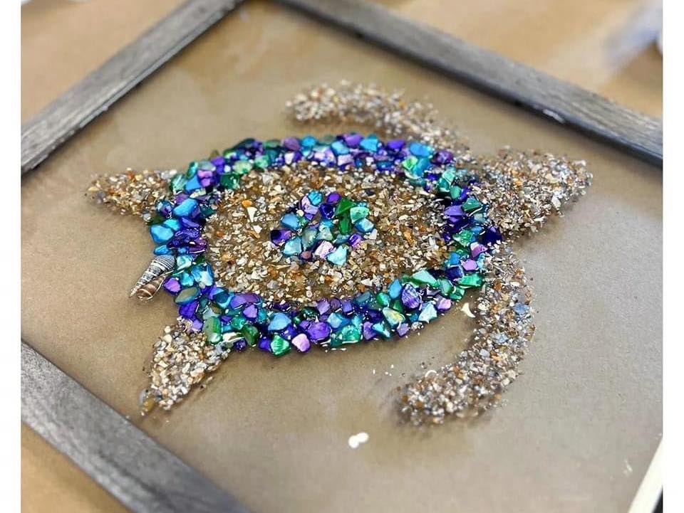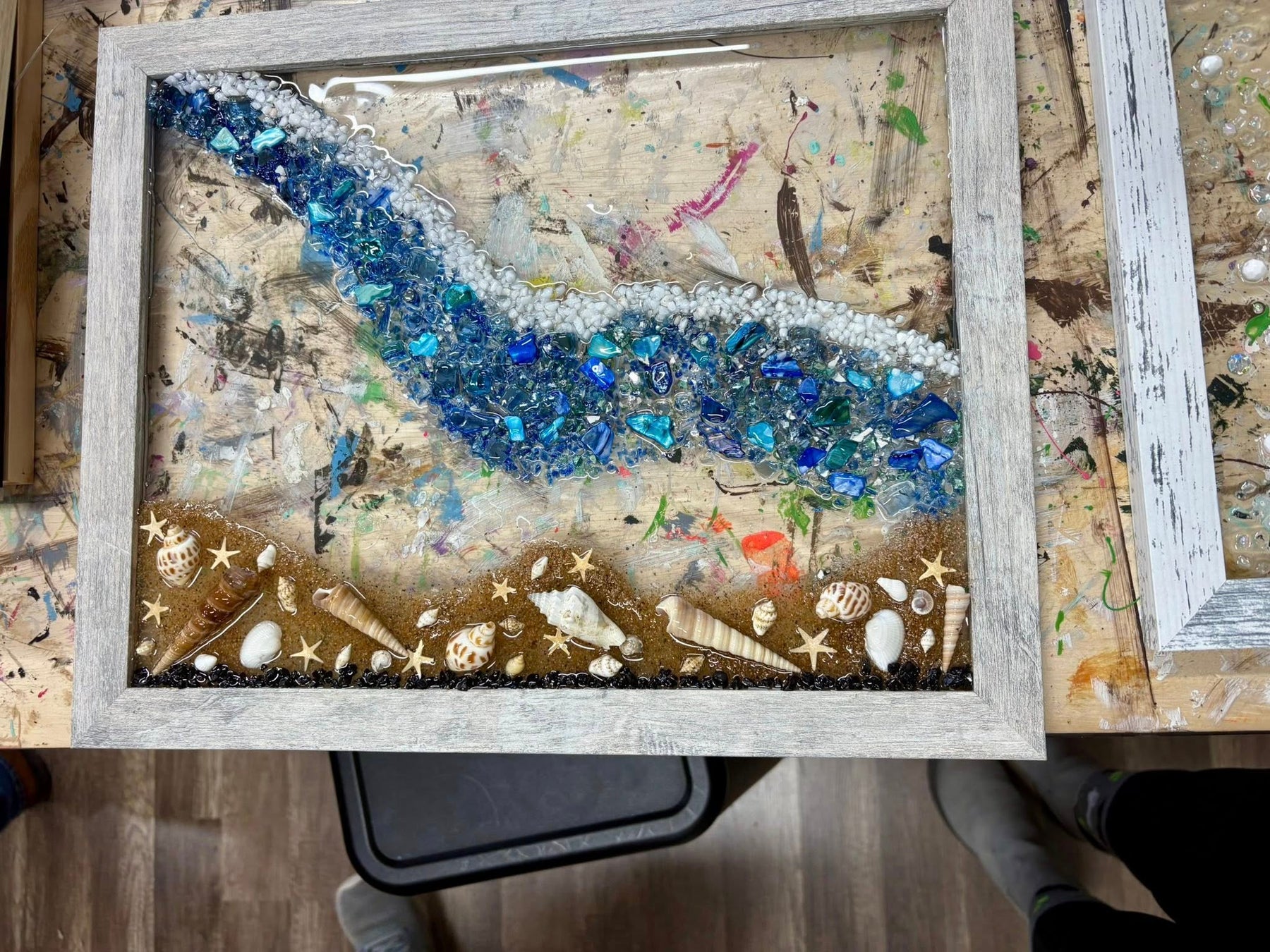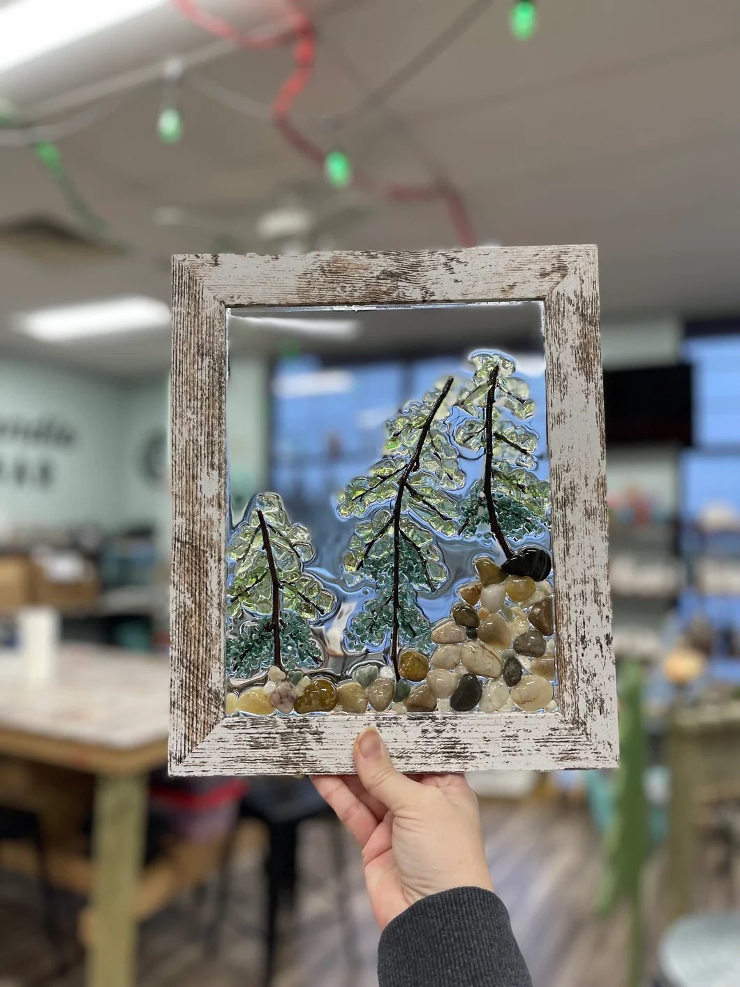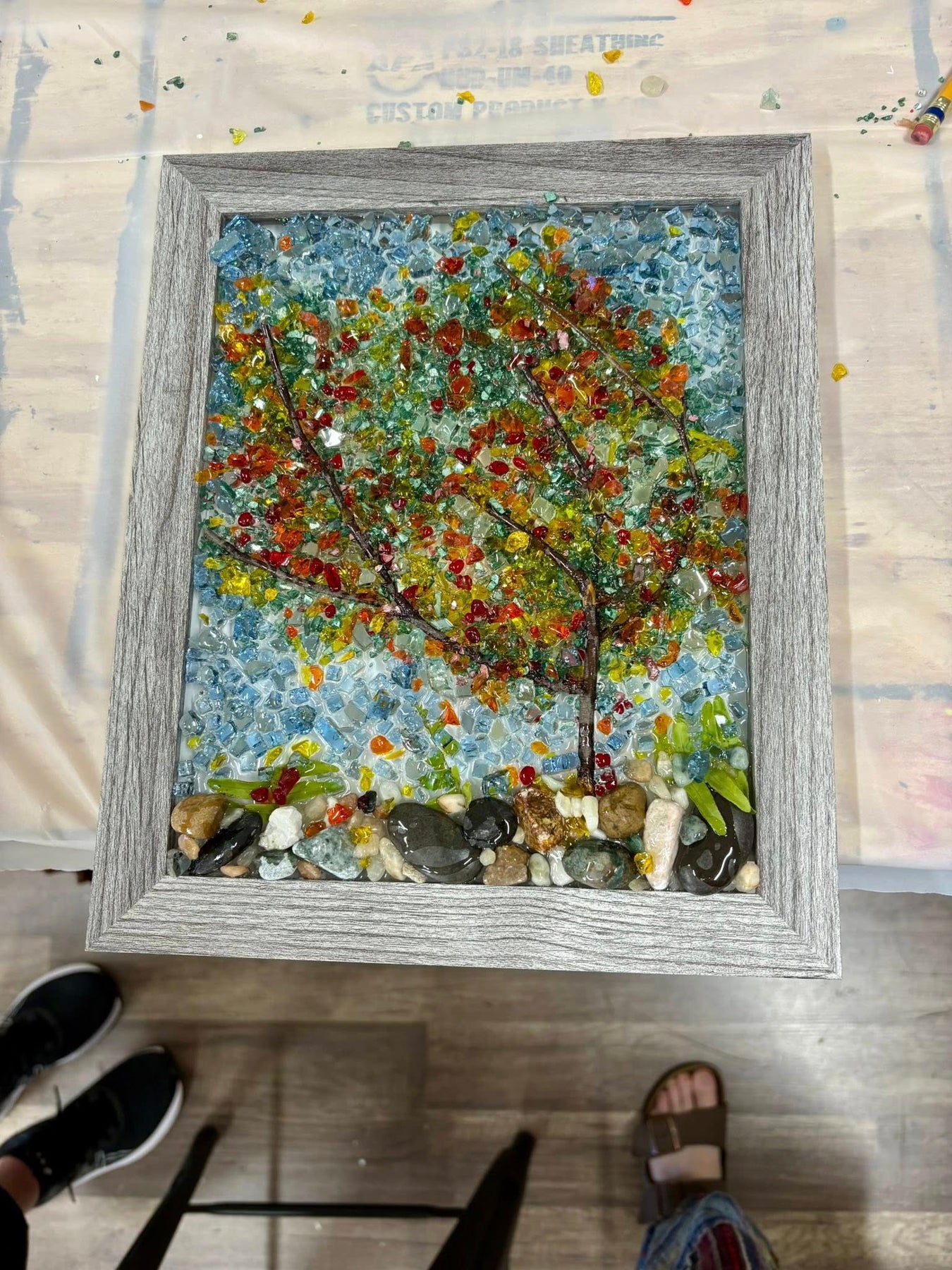 Join us in creating memories while learning how to complete your very own Crushed Glass Artwork! These framed pieces are 8" x 10".
