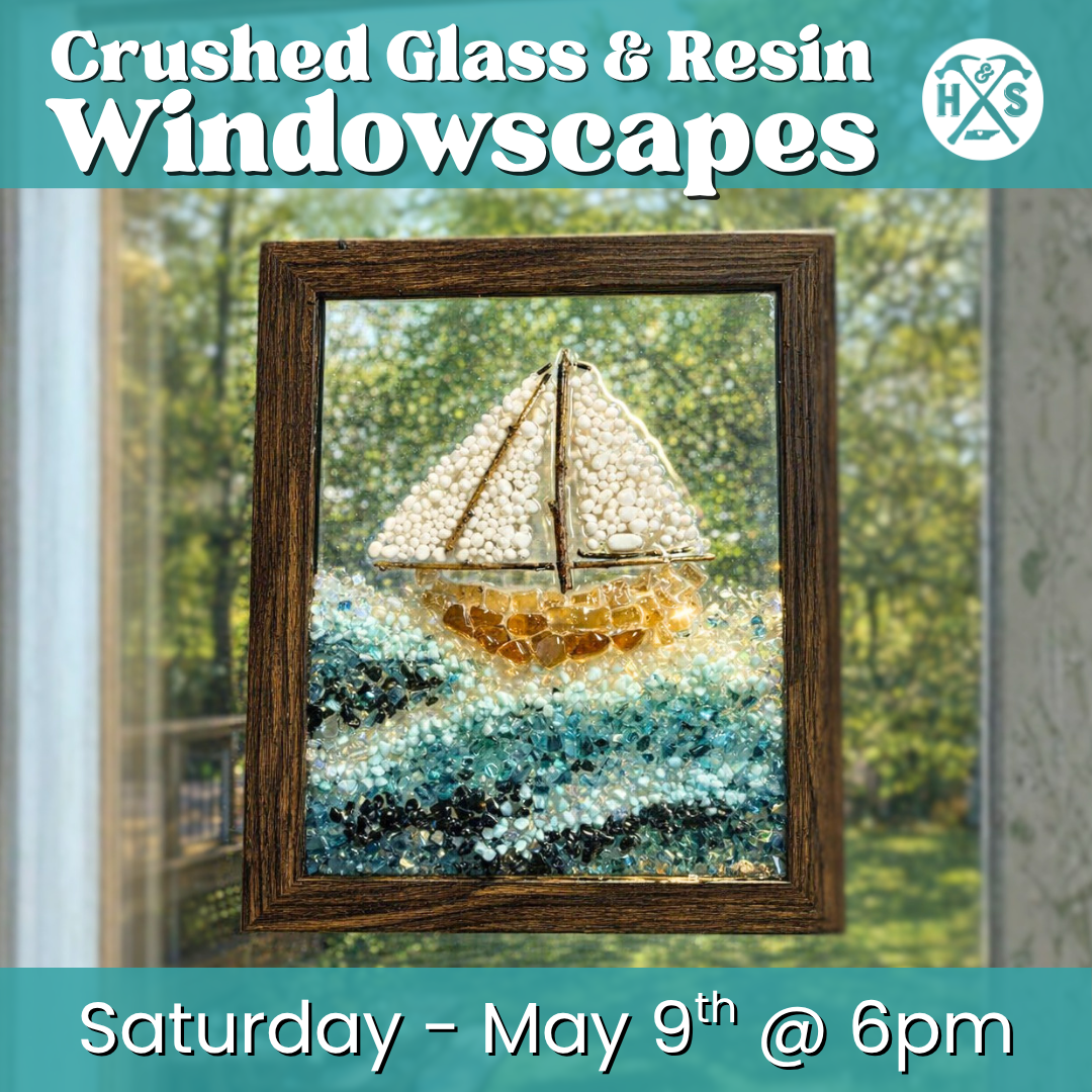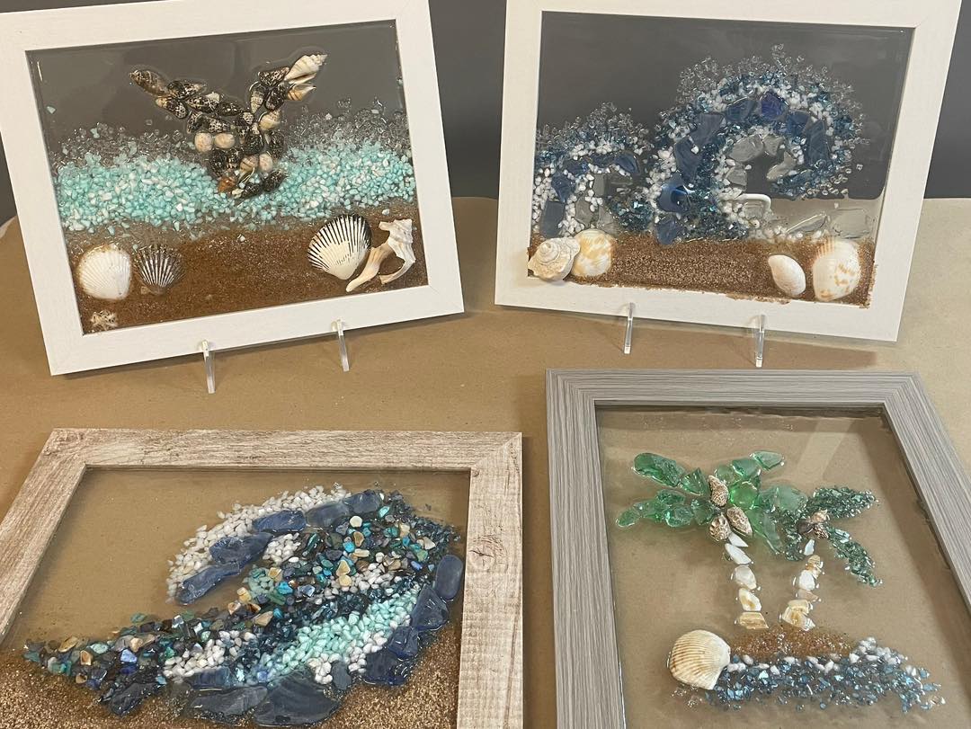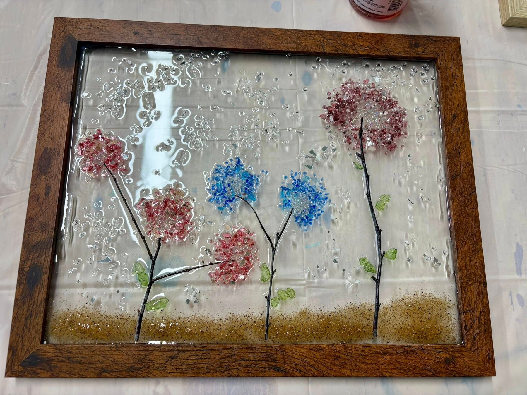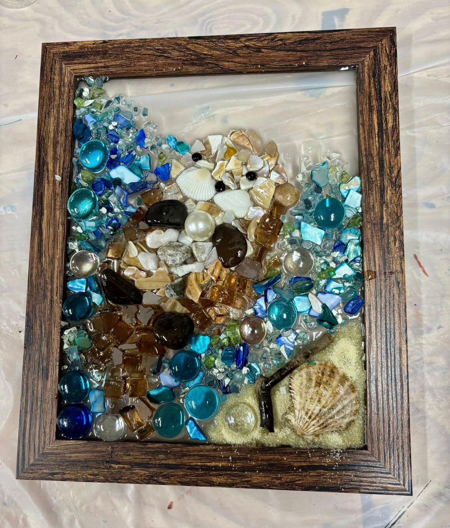 Join us in creating memories while learning how to complete your very own Crushed Glass Artwork! These framed pieces are 8" x 10".