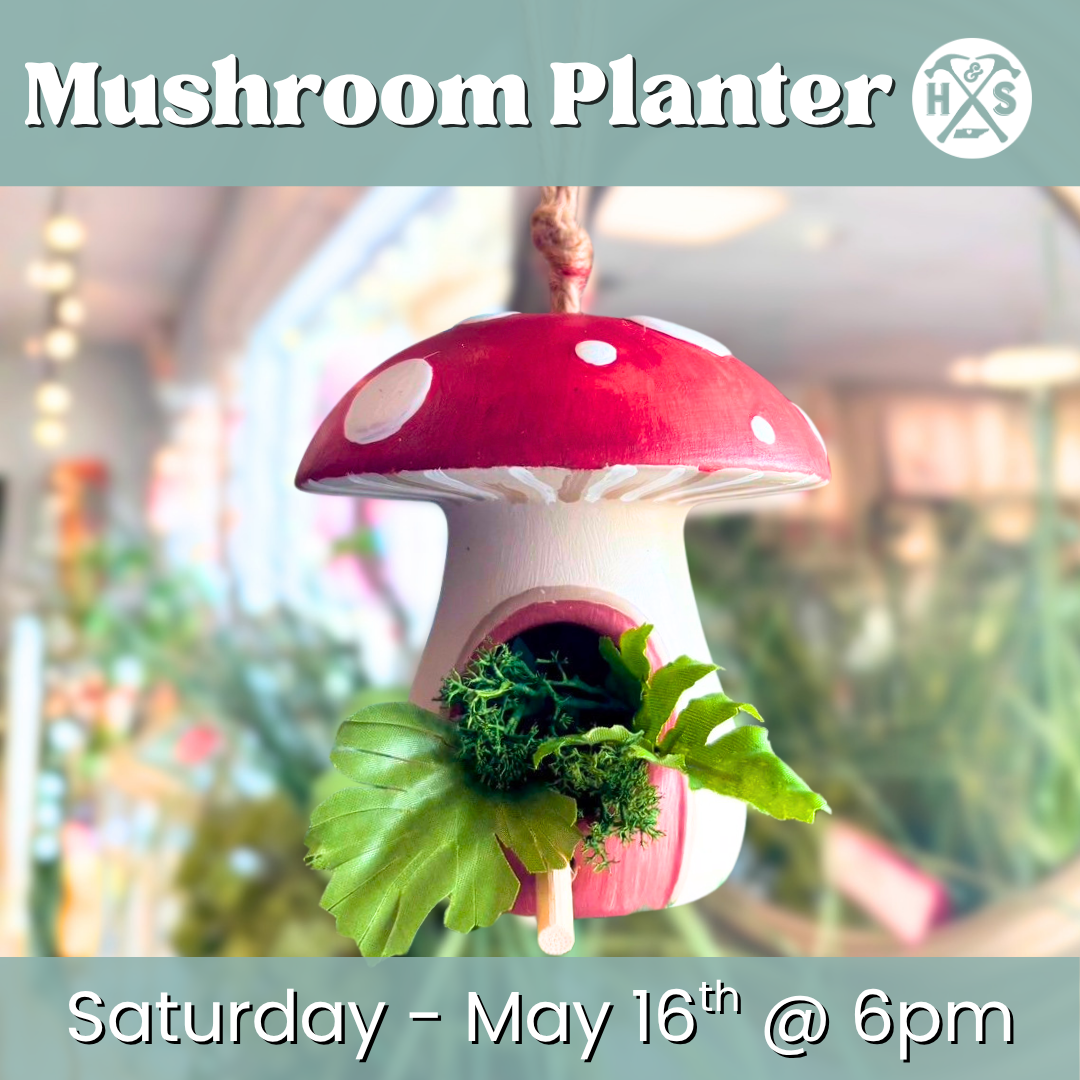 Join us on Saturday, May 16th @ 6pm for this imaginative workshop where you’ll paint a charming ceramic mushroom planter using vibrant acrylics, letting your creativity run wild with color, pattern, and personality. Because we’re using acrylics, you’ll take your finished piece home the very same night — no waiting, just instant mushroom magic.
