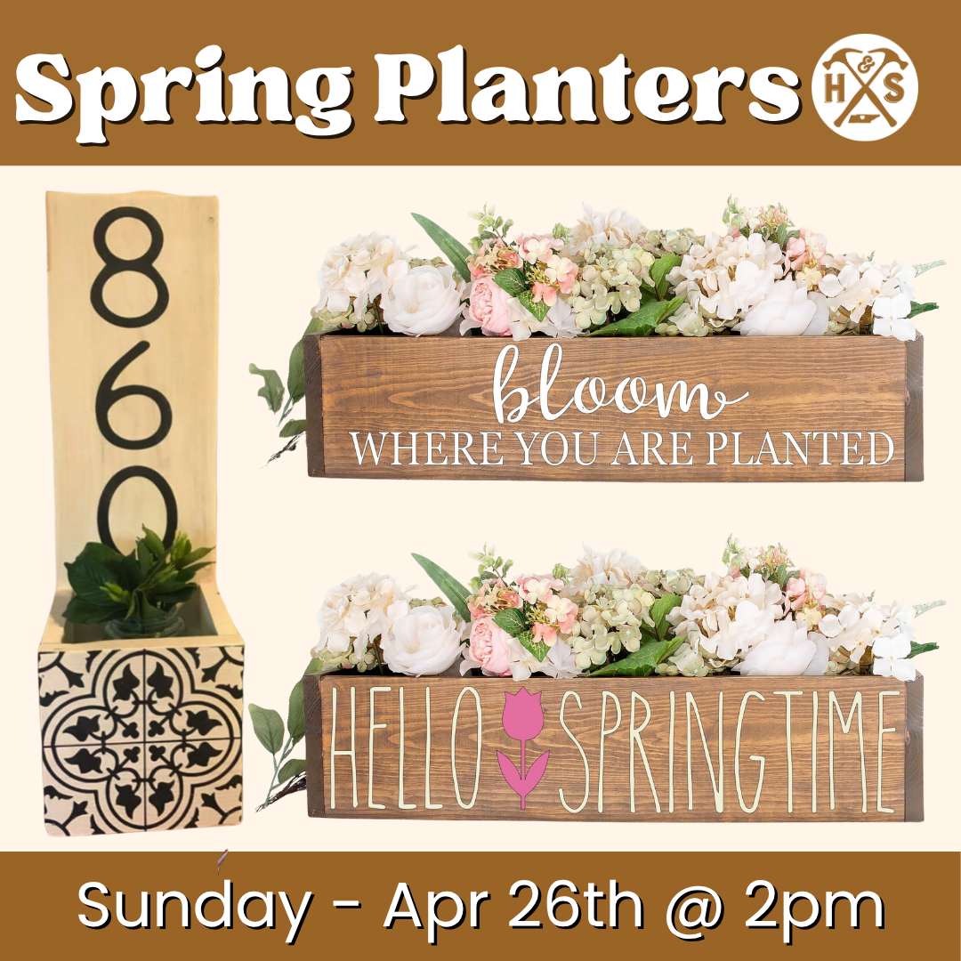 We have a variety of design options for you to choose from when you register below, and our team will guide you step‑by‑step as you stain, paint, and bring your planter to life during the workshop!